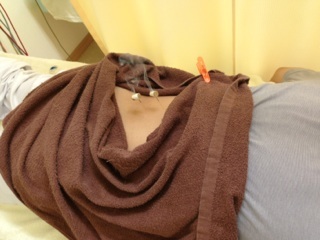 …腰の部分だけが触ると明らかに冷たい!!ということで鍼とお灸が同時に出来る「
