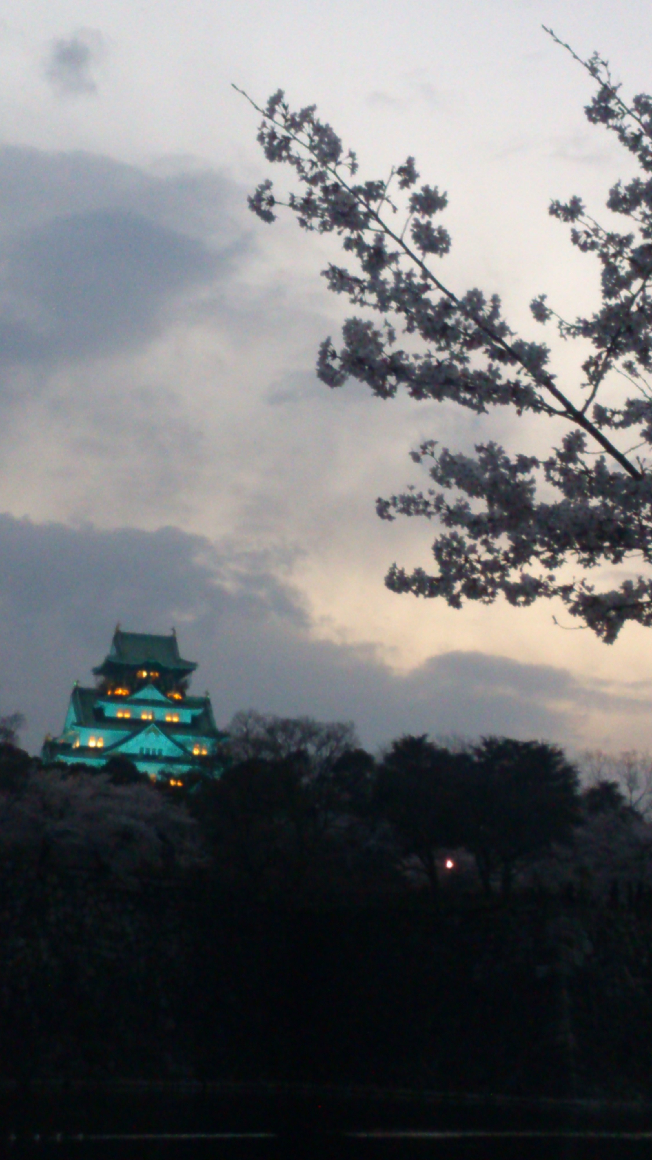 日が暮れ始めた頃、大阪城がライトアップされていましたよ。